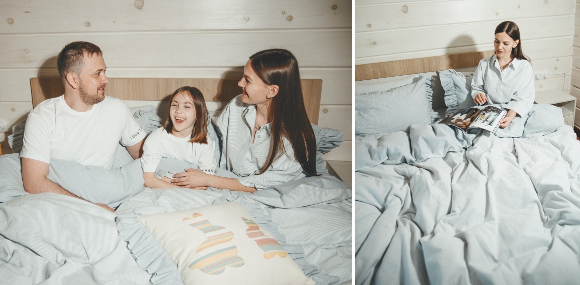 Двусторонняя модель постельного белья – это настоящий хит коллекции. Легко меняет цвет светлого на темный, просто переверните пододеяльник на другую сторону. Это не только удобно, но и добавляет динамики в интерьер.