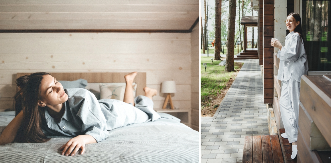 Мы использовали широкий выбор тканей с разными фактурами. Практичный вареный хлопок, он стал основой коллекции, современный мягкий фактурный жаккард и инновационная армированная ткань «Армурлу» с охлаждающим и массажным эффектом. Ткани идеально сочетаются между собой и прекрасно подходят для создания гармоничного образа.