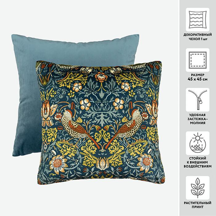 Чехол для подушки декоративный бархатный PRINT 56212 клубничный воришка 45*45 100%пэ (цвет 1009 морская волна)