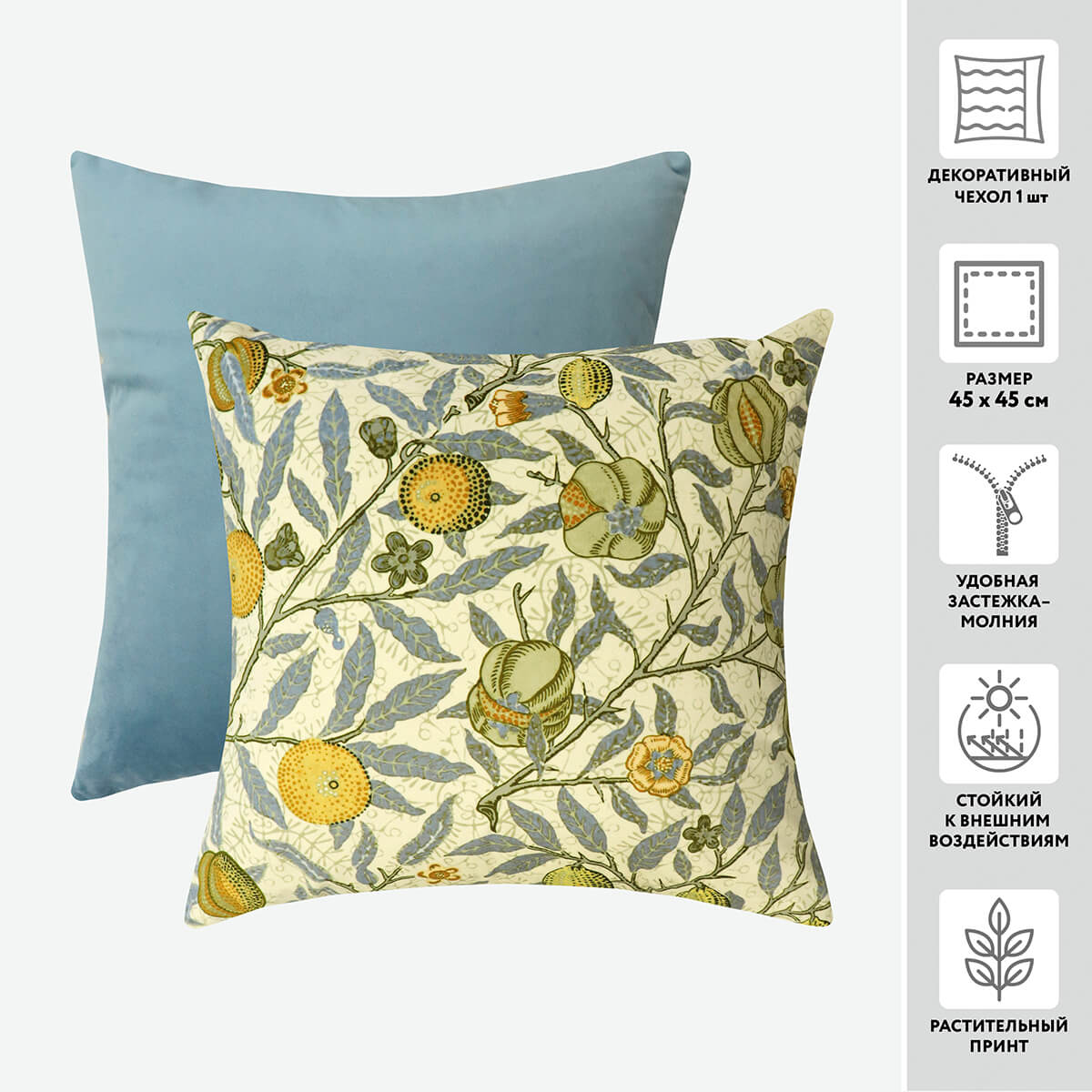 Чехол для подушки декоративный бархатный PRINT 22514 45*45 100%пэ (цвет 1030 синий прованс)