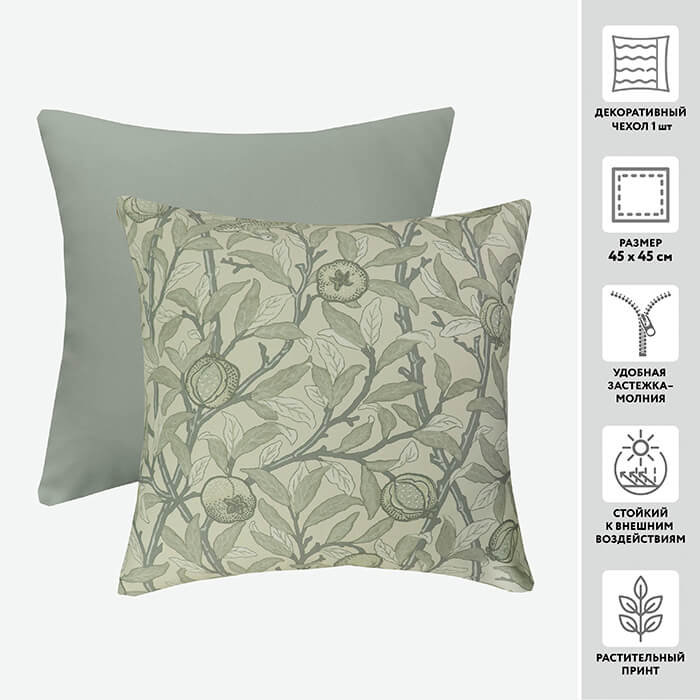 Декоративный чехол для подушки из интерьерной ткани – отличное решение для интерьера дома. Модель с привлекательным "богатым" узором из мягкой и прочной ткани - украсит диван или кресло, и создаст атмосферу уюта и отдыха. Радует и легкий уход: стирка деликатным моющим средством при температуре 40С и малых оборотах отжима.