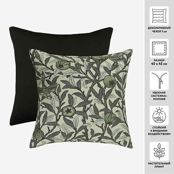 Декоративный чехол для подушки из интерьерной ткани – отличное решение для интерьера дома. Модель с привлекательным "богатым" узором из мягкой и прочной ткани - украсит диван или кресло, и создаст атмосферу уюта и отдыха. Радует и легкий уход: стирка деликатным моющим средством при температуре 40С и малых оборотах отжима.