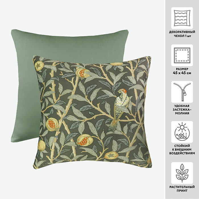 Декоративный чехол для подушки из интерьерной ткани – отличное решение для интерьера дома. Модель с привлекательным "богатым" узором из мягкой и прочной ткани - украсит диван или кресло, и создаст атмосферу уюта и отдыха. Радует и легкий уход: стирка деликатным моющим средством при температуре 40С и малых оборотах отжима.