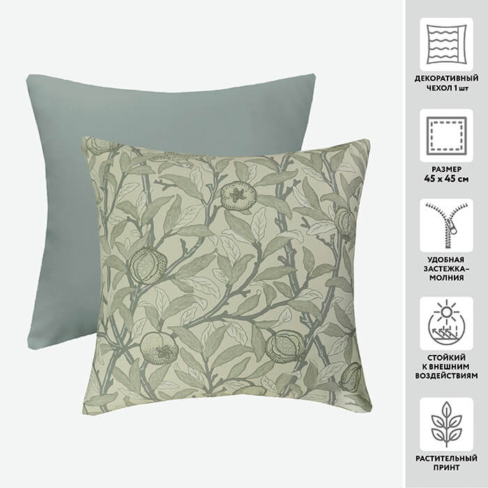 Декоративный чехол для подушки из интерьерной ткани – отличное решение для интерьера дома. Модель с привлекательным "богатым" узором из мягкой и прочной ткани - украсит диван или кресло, и создаст атмосферу уюта и отдыха. Радует и легкий уход: стирка деликатным моющим средством при температуре 40С и малых оборотах отжима.