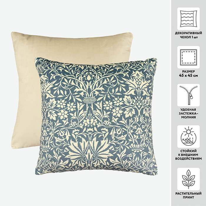 Декоративный чехол для подушки из бархата – отличное решение для интерьера дома. Модель с привлекательным "богатым" узором из мягкой и прочной ткани бархат - украсит диван или кресло, и создаст атмосферу уюта и отдыха. Радует и легкий уход: стирка деликатным моющим средством при температуре 40С и малых оборотах отжима.