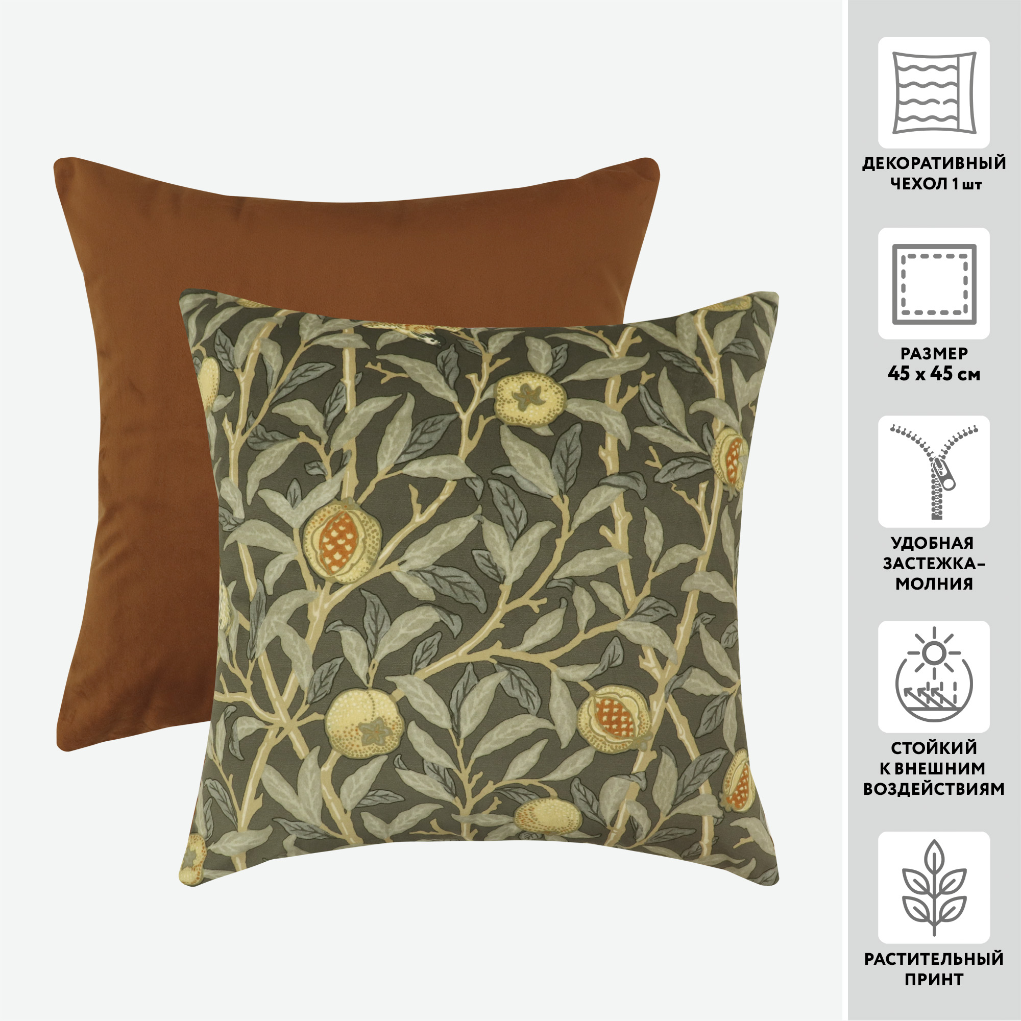 Чехол для подушки декоративный бархатный PRINT 56263 45*45 100%пэ (цвет 1015 табачный)