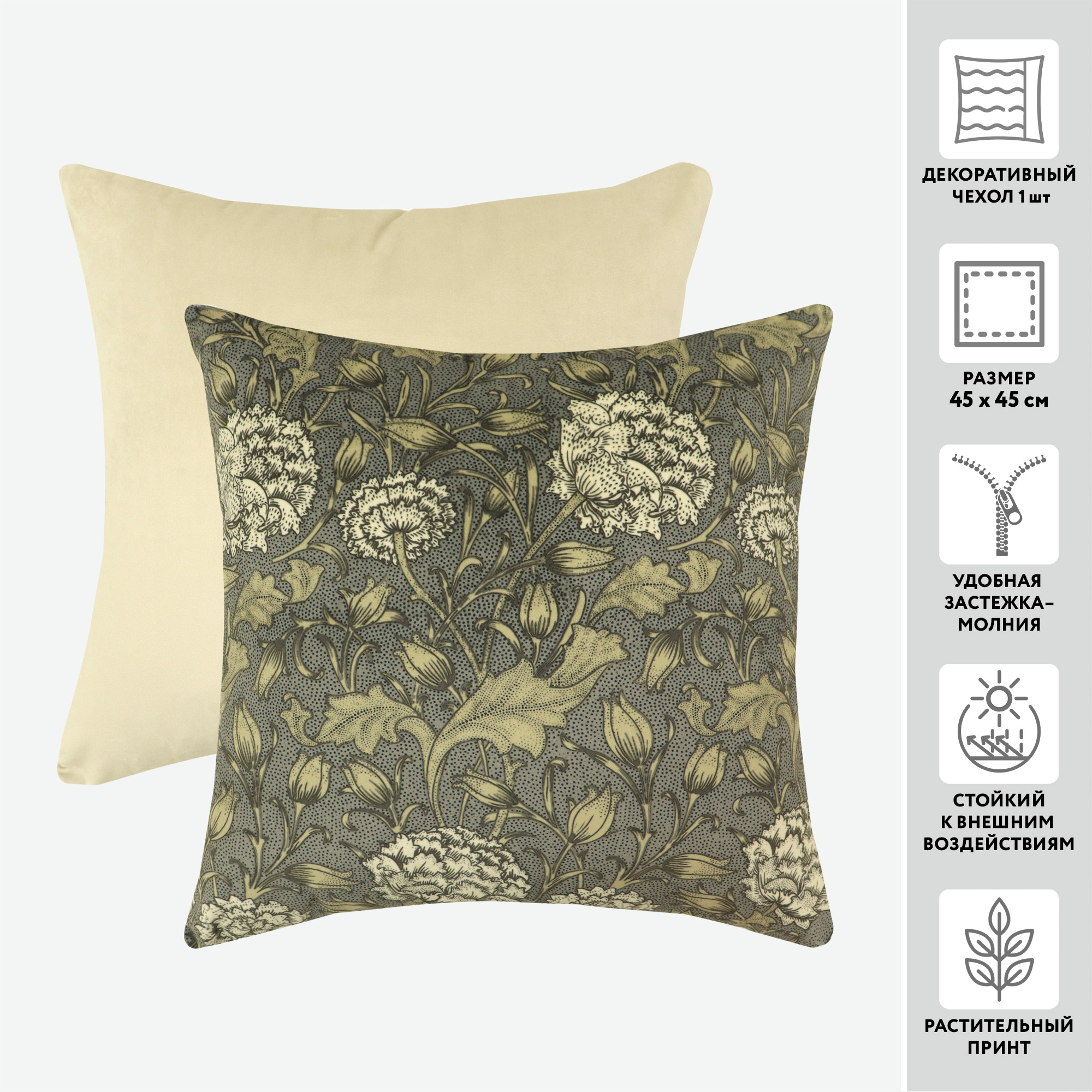Чехол для подушки декоративный бархатный PRINT 55630 45*45 100%пэ (цвет 1012 оливково-серый)