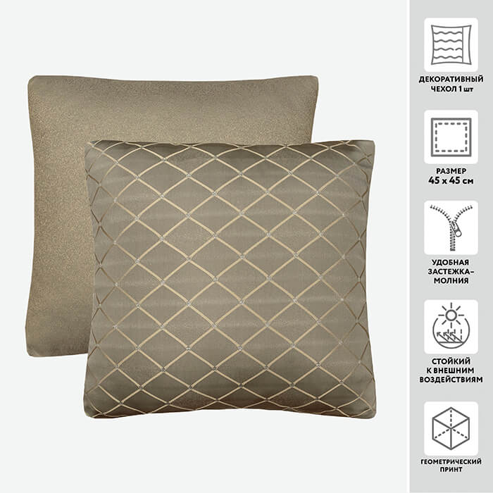 Декоративные чехлы для подушек - станет отличным дополнением поддержать интерьер комнаты. Коллекция со стильным геометрическим рисунком, выполненным в технике жаккарда, добавит динамики и станет завершающим штрихом Вашего интерьера! Интерьерная ткань - прочная и износостойкая, не выгорает на свету, приятная на ощупь. Легко отстирывается деликатным моющим средством при температуре 40С и малых оборотах отжима.