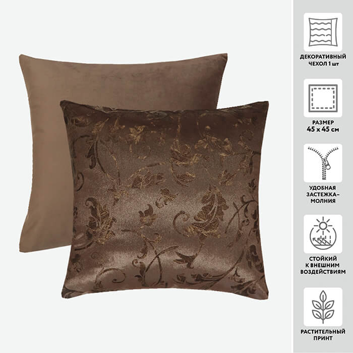 Декоративный чехол для подушки с классическим орнаментом, станет незаменимым украшением современного интерьера. Чехол из интерьерной ткани - прочный и износостойкой, легко отстирывается деликатным моющим средством при температуре 40С и малых оборотах.