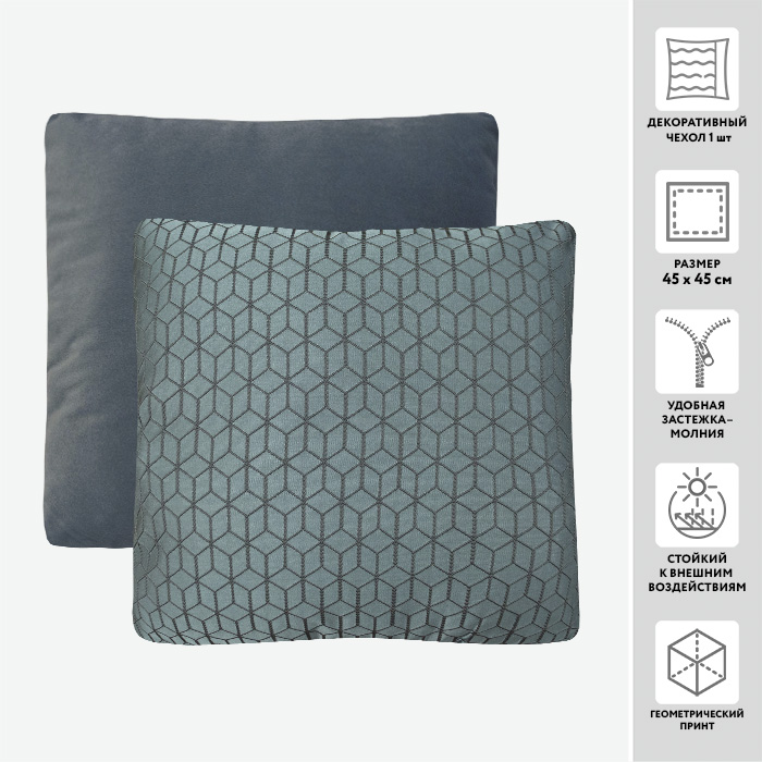 Декоративный чехол для подушки с жаккардовым узором, станет незаменимым украшением современного интерьера. Чехол из интерьерной ткани - прочный и износостойкой, легко отстирывается деликатным моющим средством при температуре 40С и малых оборотах.