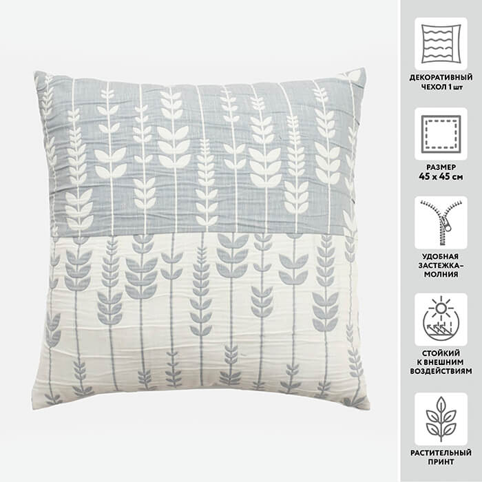 Чехол для подушки декоративный МИРТЕК OZGE 12 ФЛОРА 45*45 85%пэ 15%хлопок (цвет А06-Серый)
