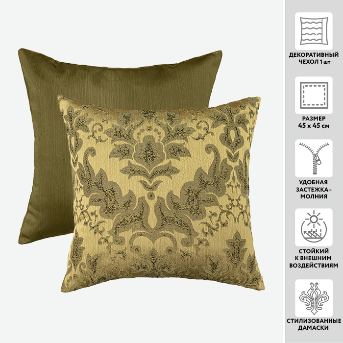 Декоративный чехол для подушки из жаккарда – отличное решение для интерьера дома. Мягкая ткань, привлекательный "богатый" узор украсят диван или кресло, и создадут атмосферу уюта и отдыха. Жаккард – это прочная узорчатая ткань, отличающаяся плотностью и износостойкостью, не выгорает на свету, приятная на ощупь. Радует и легкий уход: стирка деликатным моющим средством при температуре 40С и малых оборотах отжима.