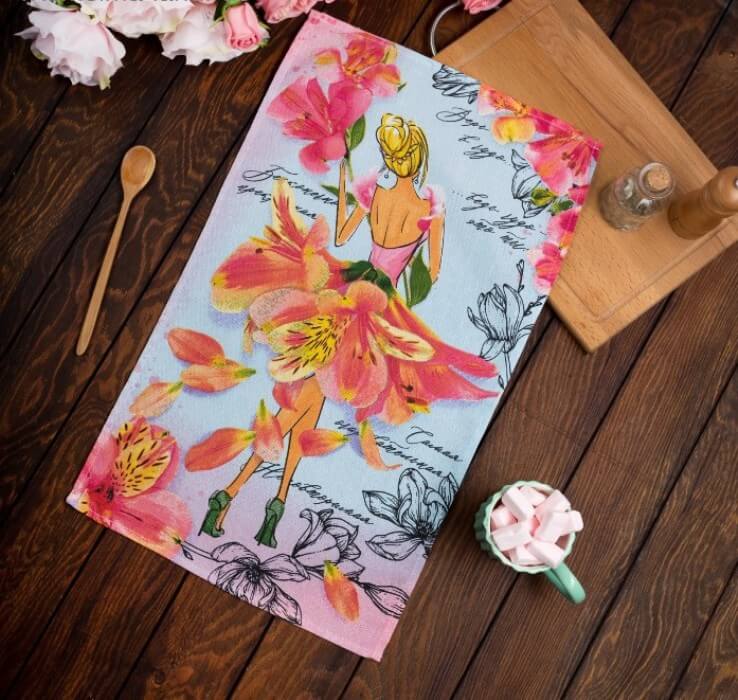 Полотенце кухонное ДОЛЯНА САМАЯ ОЧАРОВАТЕЛЬНАЯ рогожка 35x60 100%хлопок голубой розовый