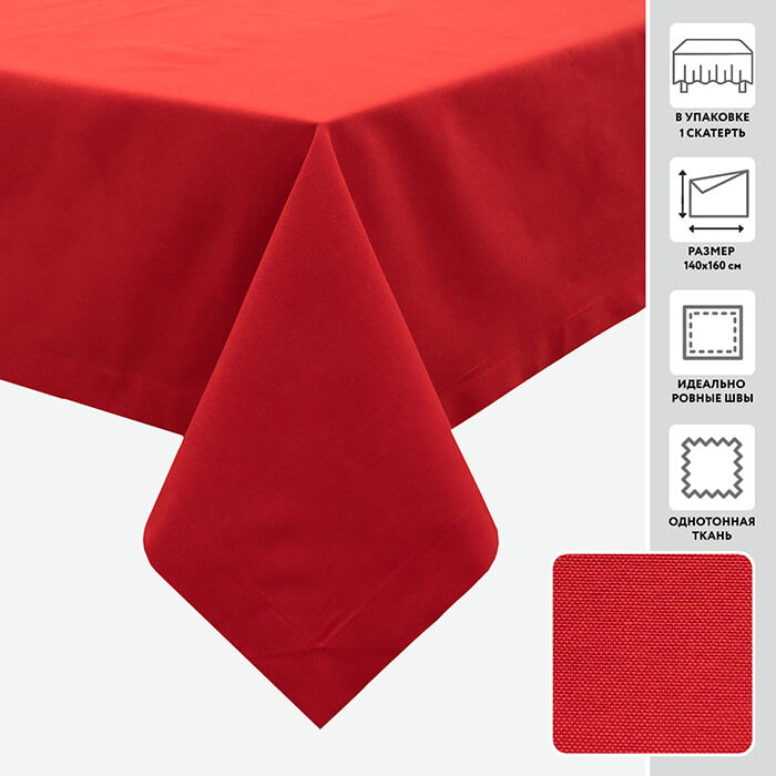 Однотонная скатерть - базовая вещь для оформления праздничного стола. Добавьте салфетки, конверты для столовых приборов и даже самые взыскательные гости Вас похвалят!