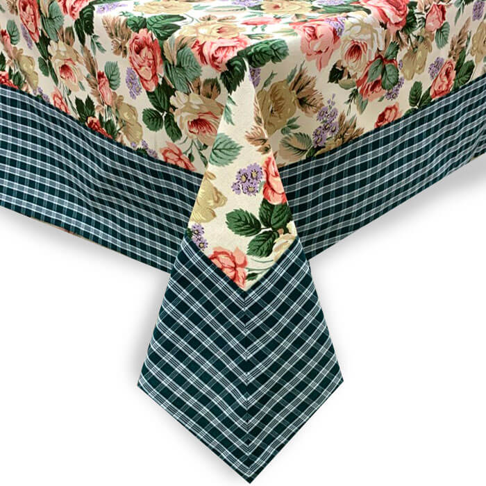 Скатерть 160х200 МИРТЕК FIORE ROSSO-RUSTICANO 70%хлопок 30%пэ ассортимент (цвет 419/9 Fiore rosso/Rusticana темный зеленый (обтачка 15))