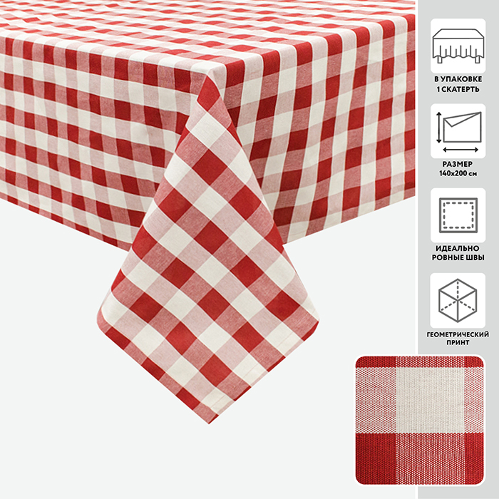 Скатерть 140х200 МИРТЕК KENT 50%хлопок 50%пэ красный (цвет 12 красный)