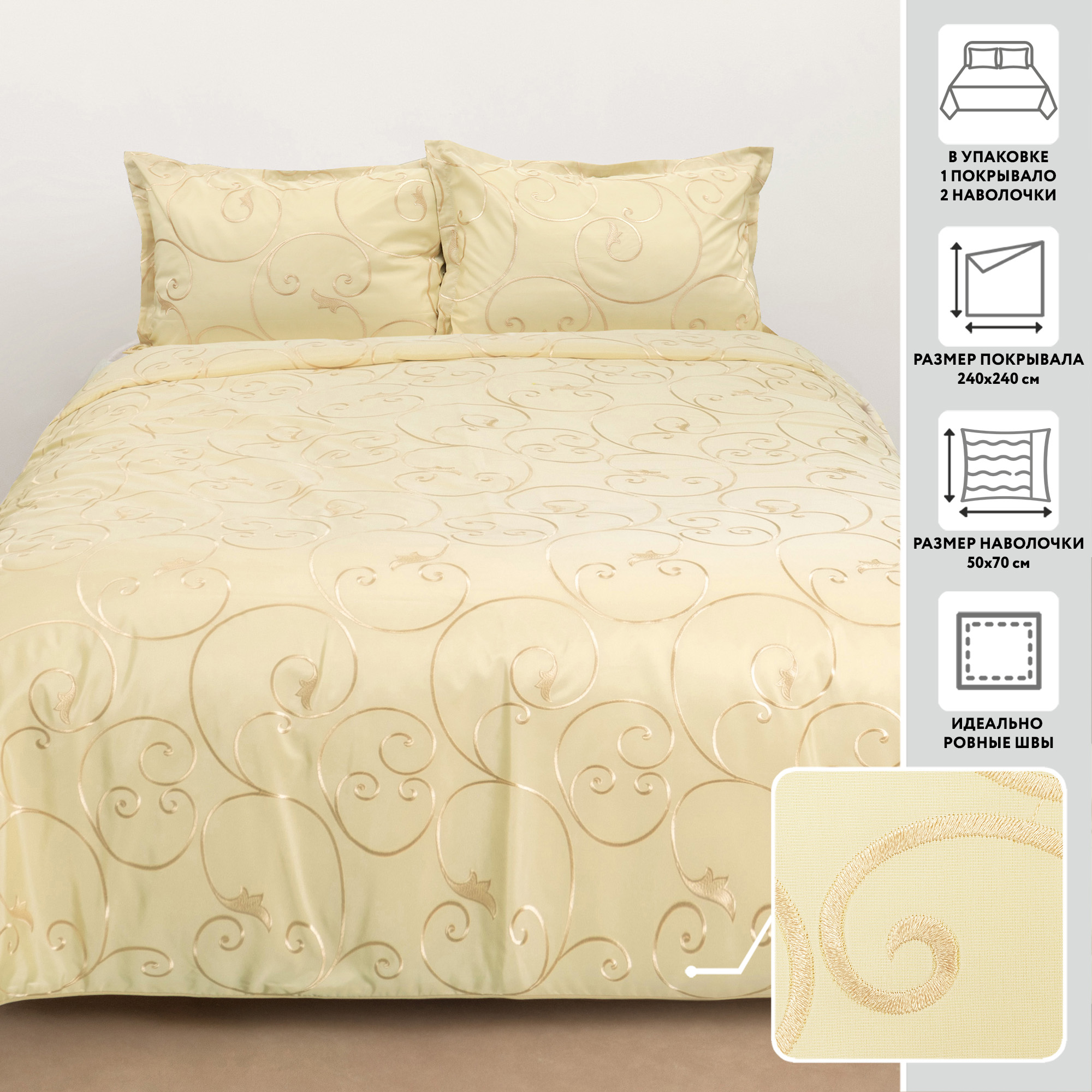 Покрывало с наволочками 50*70 2шт 240х240 МИРТЕК ТАФТА С ВЫШИВКОЙ 100%пэ ассортимент (цвет светло-бежевый)