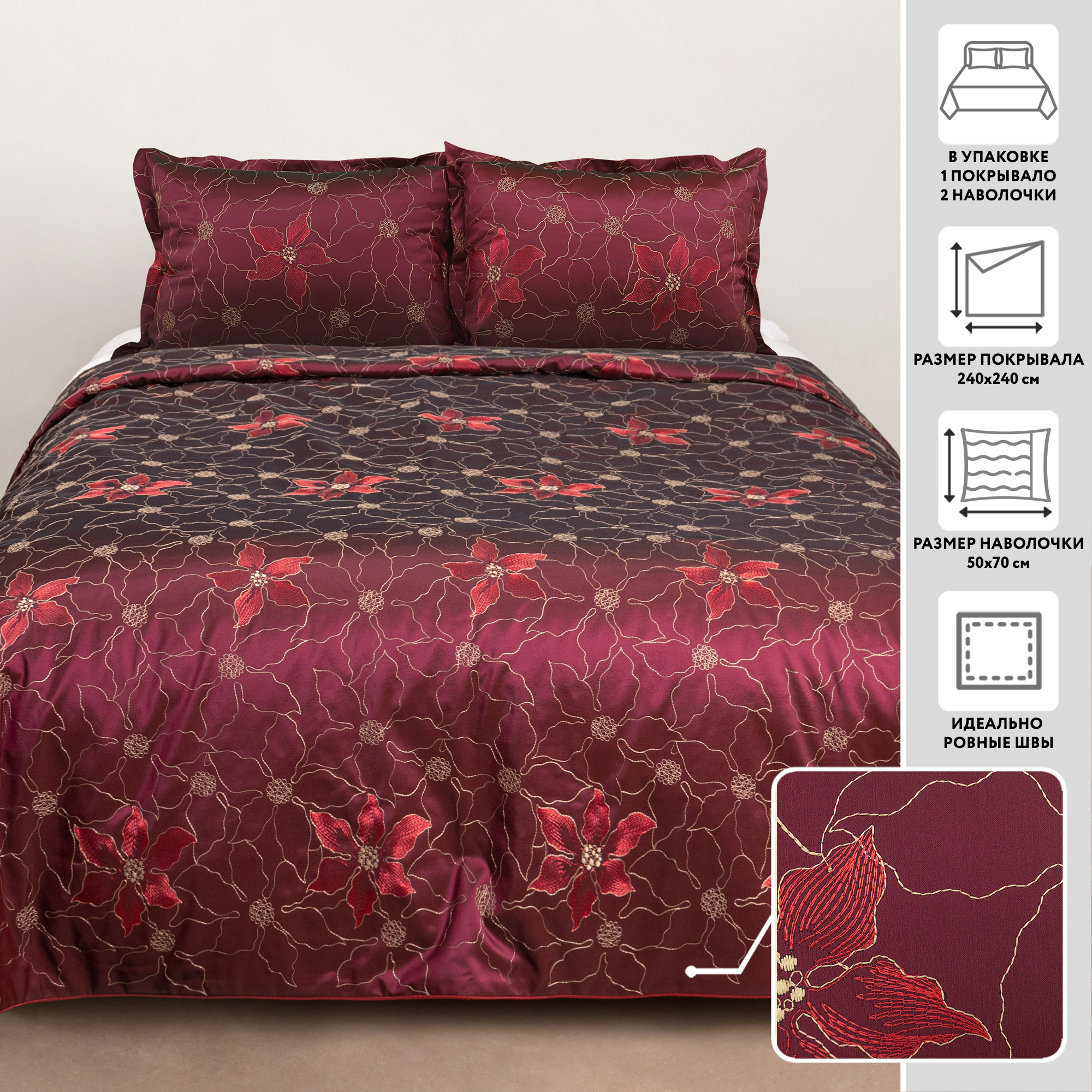 Покрывало из элегантной тафты размером 240×240 см с наволочками в комплекте 50х70-2шт, украшено выразительной вышивкой, придающей изделию особую атмосферу нежности и утончённости, которая оживляет пространство спальни или гостиной. Этот аксессуар станет прекрасным дополнением интерьера дома благодаря своему лёгкому переливающемуся блеску и приятным тактильным ощущениям. Тафта отличается прочностью и долговечностью, сохраняя первоначальный вид даже после многочисленных стирок.