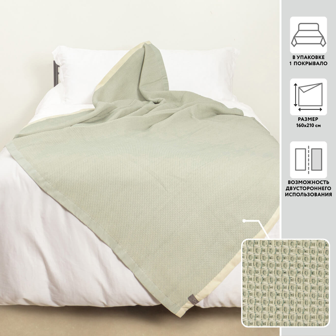 Покрывало 160х210 МИРТЕК VAFLI ARI PESTRA КОЛЬЧУГА 100%хлопок серый зеленый (Серо-зеленый)