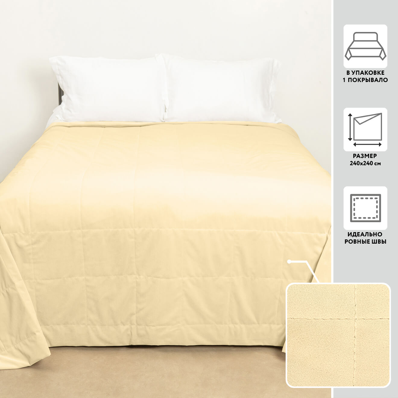 Элегантное покрывало из бархата с классической строчкой квадратиками станет роскошным акцентом в вашем интерьере. Бархатная поверхность придает изделию мягкую текстуру и приятный блеск, создавая ощущение комфорта и уюта. Строчка квадратиками выполнена аккуратными ровными линиями, придавая покрываю дополнительную прочность и эстетичность. Размер 240х240 см идеально подходит для больших кроватей и диванов, позволяя создать гармоничный образ в интерьере. Благодаря своей универсальности и привлекательному дизайну, такое покрывало станет отличным выбором для любого стиля оформления комнаты, будь то классика, модерн или минимализм.