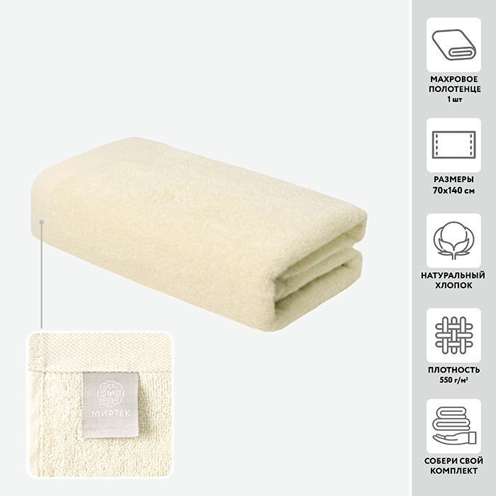 Полотенце махровое МИРТЕК MURSALIN 70х140 100%хлопок экрю