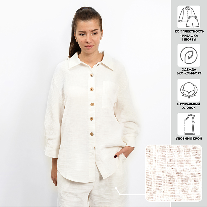 КОСТЮМ РУБАШКА+ШОРТЫ МИРТЕК «ЭКО КОМФОРТ» МУСЛИН 100%хлопок (белый 42-44)