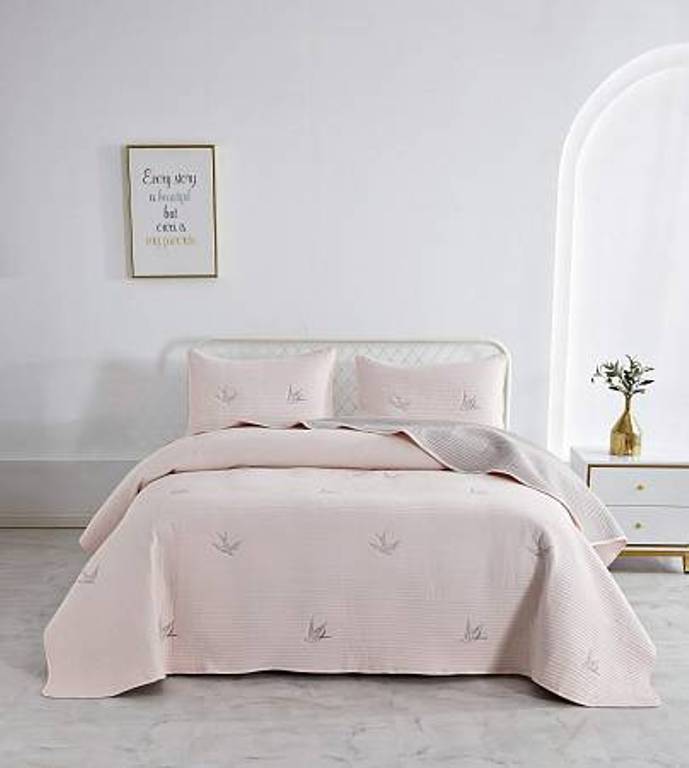 Покрывало предлагаем с декоративными наволочками SOFI DE MARKO серии ЖАКЛИН, с легкостью предадут интерьеру уют и комфорт. У покрывала мягкие очертания кроя на ткани дизайнерская вышивка в виде ласточек, такой дизайн создает теплую и романтичную обстановку в спальне, будет незаменимо как декоративное покрывало, а так же как теплое одеяло, в гостиной как уютный плед. Комплект серии ЖАКЛИН состоит из мягкой ткани сатин, в состав которой входит хлопок и вискоза, которую окрасили натуральными красителями, в серии пастельные цвета, выберите любимый из четырех. Покрывало с наволочками укладывается в сумку, что делает возможным использовать комплект как подарок без дополнительной упаковки на торжество, юбилей, день рождений, коллегам, друзьям, родным и близким. Легкий уход: стирайте при температре 30С, так ткань сохранит цвет, отжим на малых оборотах - вид, сушите в развернутом виде - и на ткани не будет заломов.