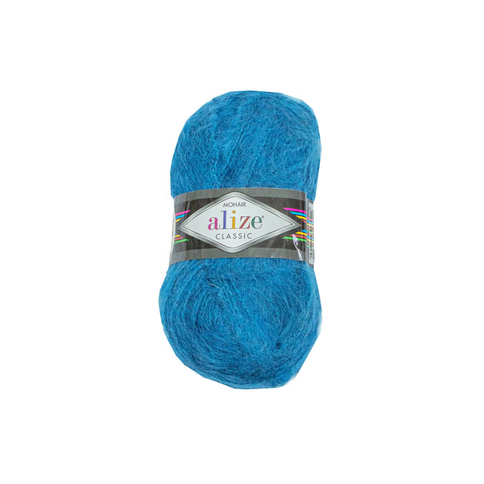 Mohair Classic турецкой марки Alize представляет собой 100-граммовый моток осенне-зимней пряжи из акрилово-шерстяной нити длиной 200 метров. Нить Ализе Классик обладает легким перламутровым блеском, воздушностью и пушистостью с высоким ворсом мохера. Зимнюю пряжу Alize Мохер можно вязать крючком и спицами. Пряжа из мохера подходит для шарфов и шапок, шалей и палантинов, кардиганов, туник и пончо, пуловеров, джемперов и жилетов. Готовые изделия из демисезонной мохеровой пряжи Ализе мягкие и теплые, легкие и пушистые, мало подверженые деформации и линьке. Рекомендуемый размер спиц 5,0-7,0, крючка 2,0-4,0. Рекомендована ручная стирка, легкий отжим при 30 градусах и сушка в расправленном виде на горизонтальной поверхности.