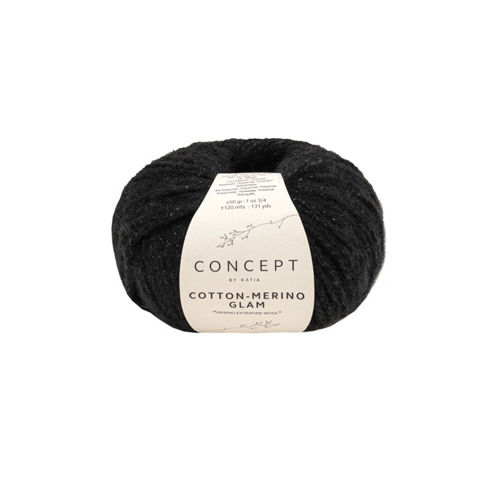 KATIA Cotton-Merino Glam 50г-120м 46%хлопок 34%шерсть 12%полиэстр 8%полиамид (306-черный)