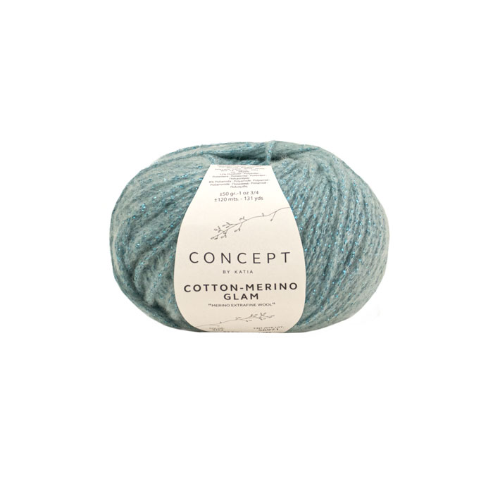 KATIA Cotton-Merino Glam 50г-120м 46%хлопок 34%шерсть 12%полиэстр 8%полиамид (309-голубой)