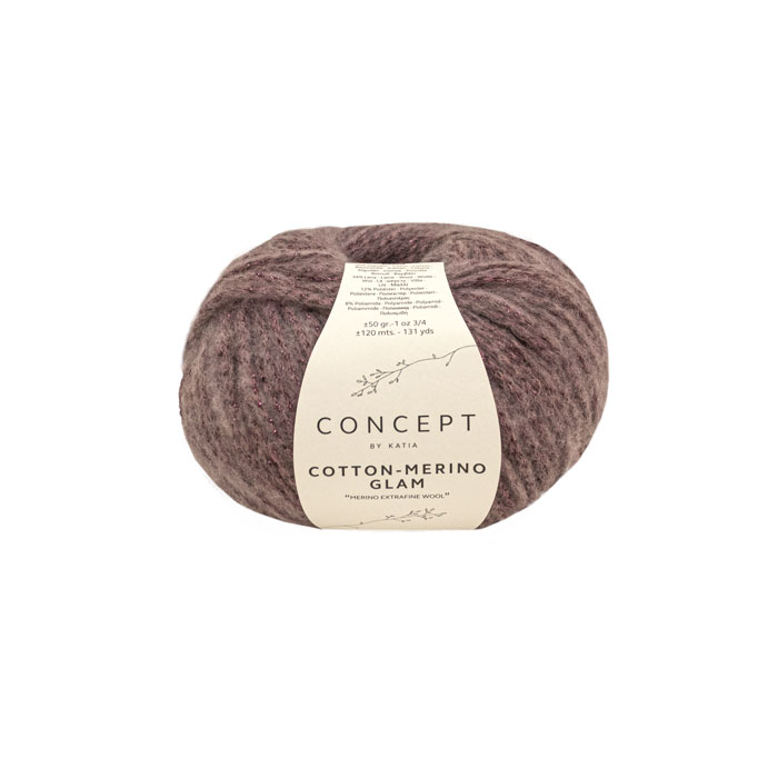 Cotton-Merino Glam испанской марки Katia представляет собой 50-граммовый моток гламурной всесезонной пряжи из хлопково-мериносовой нити с люрексом длиной 120 метров. Благодаря сочетанию хлопка, мериносовой шерсти и полиамида готовые изделия невероятно нежные и мягкие, легкие, воздушные и комфортные в носке. Тонкая металлизированная нить в составе придает полотну деликатный блеск. Из испанской пряжи Коттон Мерино Глам можно вязать крючком и спицами в 2 нити. Пряжа Katia подходит для вязания жилетов, пуловеров, свитеров и кардиганов, платьев и сарафанов, шалей, шарфов, шапок и перчаток. Рекомендуемый размер спиц 5,0-6,0, крючка 6,0-7,0.