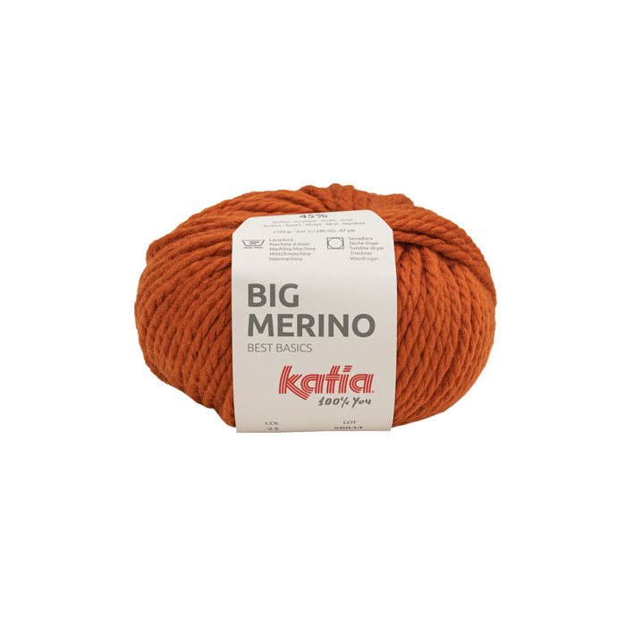 Big Merino испанской марки Katia представляет собой 100-граммовый моток плотной осенне-зимней пряжи из 3 (трех) скрученных друг с другом шерстяных нитей длиной 80 метров. Благодаря сочетанию мериносовой шерсти и акрила готовые изделия теплые и мягкие, легкие и воздушные, уютные и комфортные в носке. Из испанской пряжи Биг Мерино можно вязать крючком и спицами в 1 нить. Пряжа Katia подходит для вязания объемных джемперов и пуловеров, свитеров и кардиганов, шарфов, шапок и снудов, рукавиц и варежек. Также эта пряжа идеальна для теплых пледов и уютных декоративных подушек. Рекомендуемый размер спиц 6,5-7,0, крючка 8,0-9,0.