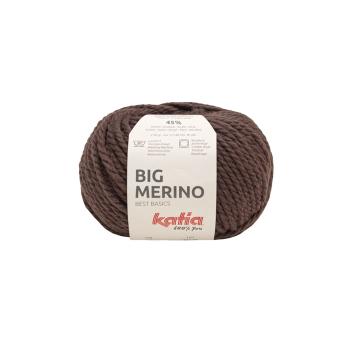 Big Merino испанской марки Katia представляет собой 100-граммовый моток плотной осенне-зимней пряжи из 3 (трех) скрученных друг с другом шерстяных нитей длиной 80 метров. Благодаря сочетанию мериносовой шерсти и акрила готовые изделия теплые и мягкие, легкие и воздушные, уютные и комфортные в носке. Из испанской пряжи Биг Мерино можно вязать крючком и спицами в 1 нить. Пряжа Katia подходит для вязания объемных джемперов и пуловеров, свитеров и кардиганов, шарфов, шапок и снудов, рукавиц и варежек. Также эта пряжа идеальна для теплых пледов и уютных декоративных подушек. Рекомендуемый размер спиц 6,5-7,0, крючка 8,0-9,0.