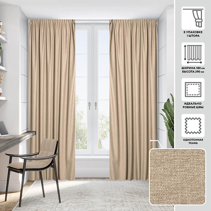 Плотные портьеры с приятной слегка бархатистой меланжевой фактурой - отличное дополнение современного интерьера! Актуальные современные оттенки гармонично сочетаются с современной отделкой и легкими тюлевыми шторами. Ткань не электризуется, проста в уходе, хорошо защищает от солнечных лучей. Ровные складки образуются благодаря удобной шторной ленте, пришитой по верхнему краю. Мы с любовью и вниманием подбираем цветовые оттенки коллекции штор МИРТЕК, чтобы Вы с легкостью могли комбинировать полотна в невероятно стильные комплекты!