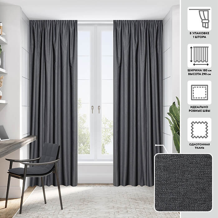 Портьера МИРТЕК FA 7163 180х290 1 шт (цвет 16 антрацит)