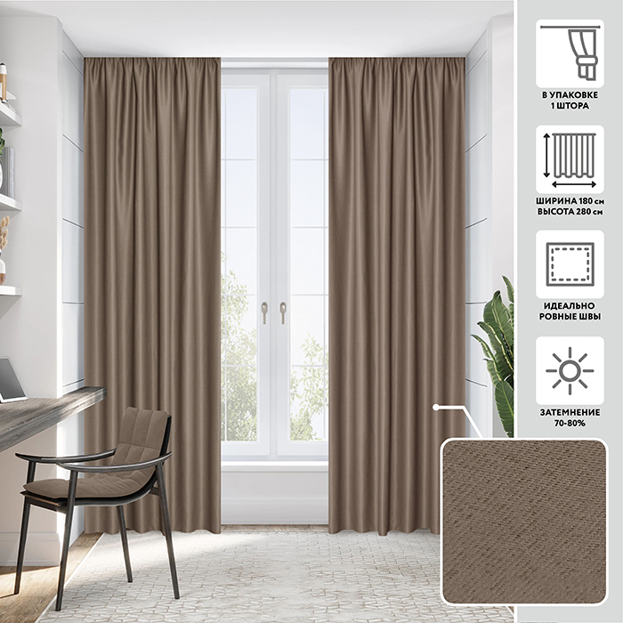 Плотные портьеры из фактурного димаута на 80 % защищают от проникновения в комнату прямых солнечных лучей. Универсальные спокойные оттенки великолепно украсят любой интерьерь - будь то гостиная, кабинет или спальня. Портьеры устойчивы к выцветанию, не деформируются после стирки. Приятная на ощупь гладкая поверхность отлично драпируется, а благодаря составу из полиэстера портьеры не накапливают пыль, что делает их гипоалергенными. Ровные складки образуются благодаря удобной шторной ленте, пришитой по верхнему краю. Мы с любовью и вниманием подбираем цветовые оттенки коллекции штор МИРТЕК, чтобы Вы с легкостью могли комбинировать полотна в невероятно стильные комплекты!