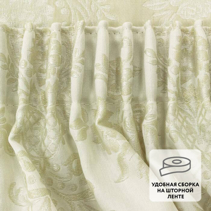 Ровные складки образуются благодаря удобной шторной ленте, пришитой по верхнему краю.