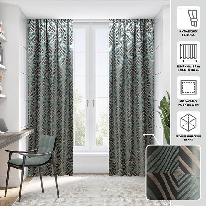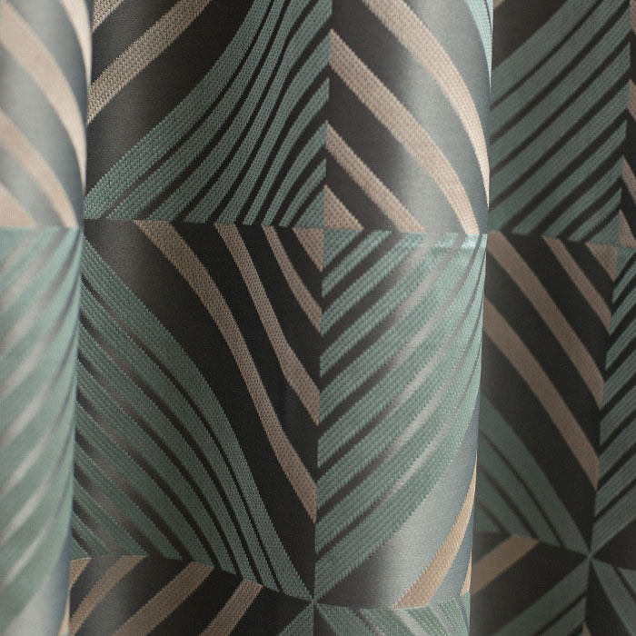 Яркие современные шторы с геометрическим орнаментом, выполненные из плотной ткани, хорошо защищают от солнца. Рисунок выполнен из контрастных по оттенкам нитей высокой плотности с деликатным сатиновым отблеском, и засчет особого жаккардового переплетения полотна имеют эффект 3D. Хороший вариант для кабинета или современной гостиной. Благодаря гипоаллергенному составу, за шторами легко и просто ухаживать.
