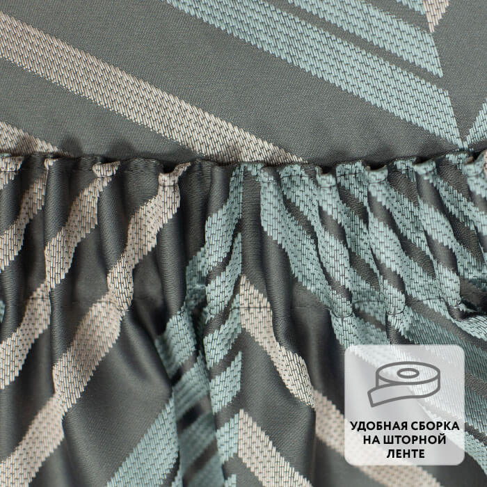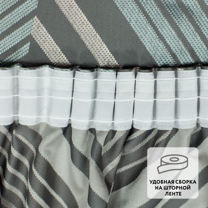 Ровные складки образуются благодаря удобной шторной ленте, пришитой по верхнему краю.