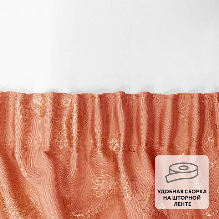 Ровные складки образуются благодаря удобной шторной ленте, пришитой по верхнему краю.