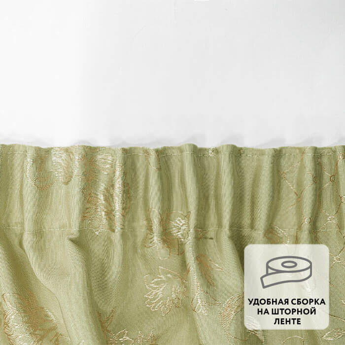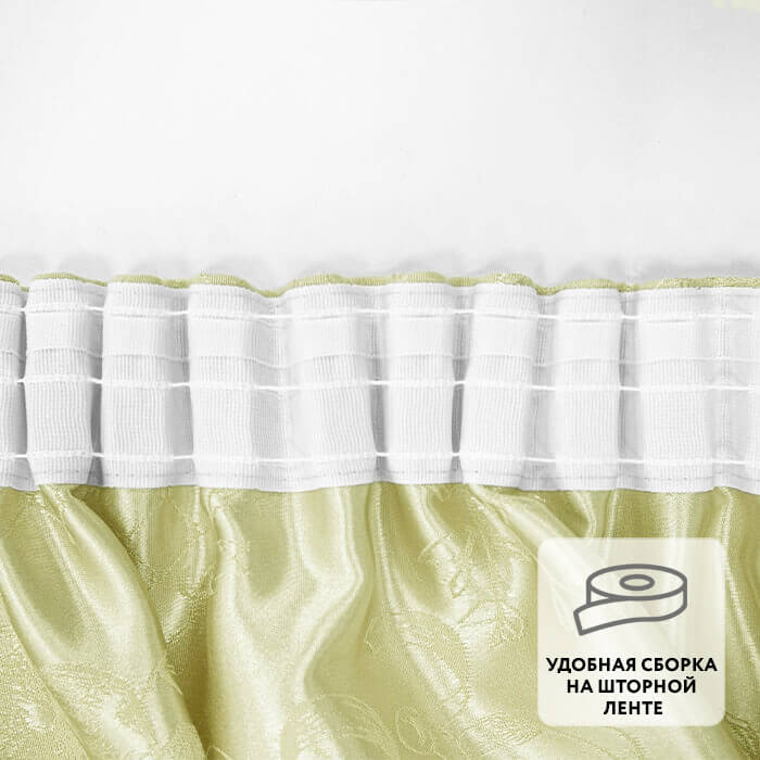 Ровные складки образуются благодаря удобной шторной ленте, пришитой по верхнему краю.