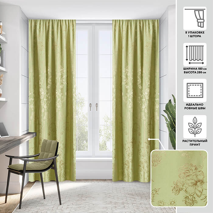 Портьера МИРТЕК ERMITAGE 180х280 1 шт (цвет 670 еловая хвоя)
