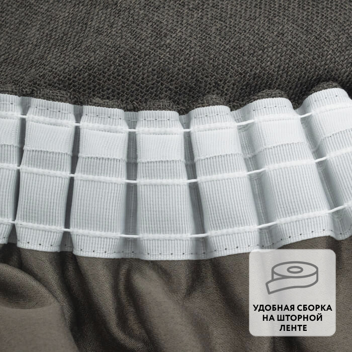 Ровные складки образуются благодаря удобной шторной ленте, пришитой по верхнему краю.