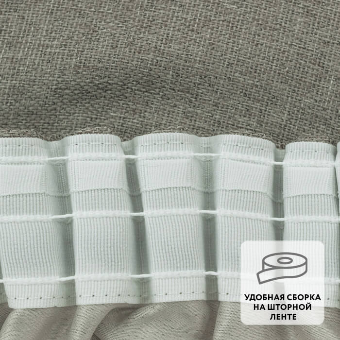Ровные складки образуются благодаря удобной шторной ленте, пришитой по верхнему краю.