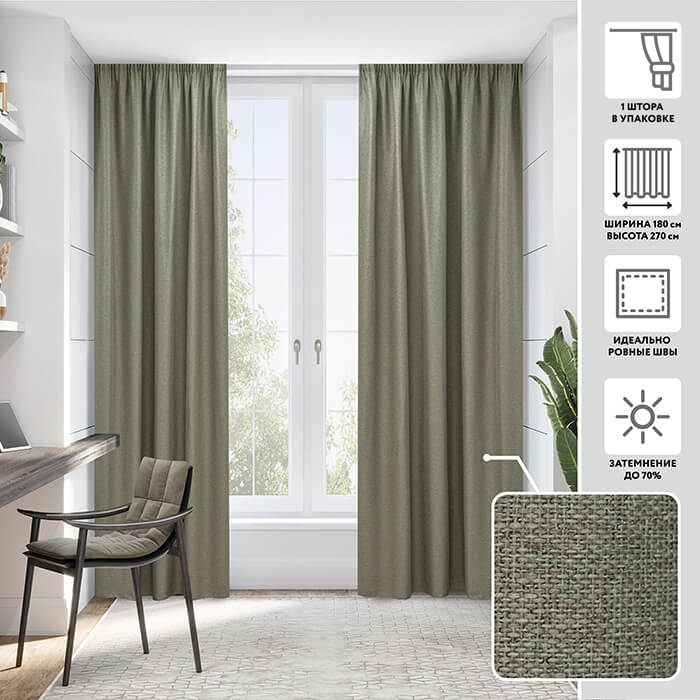 Портьера блэкаут МИРТЕК РОГОЖКА 180х270 1 шт