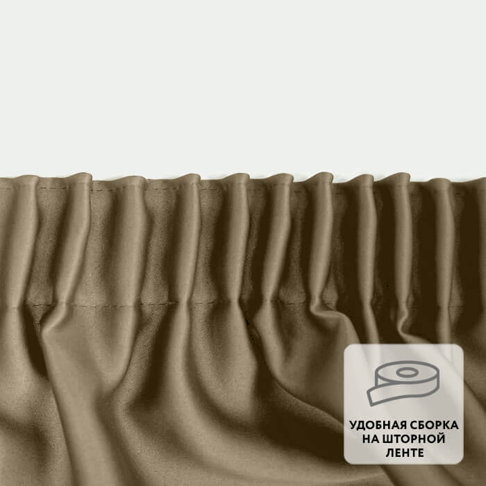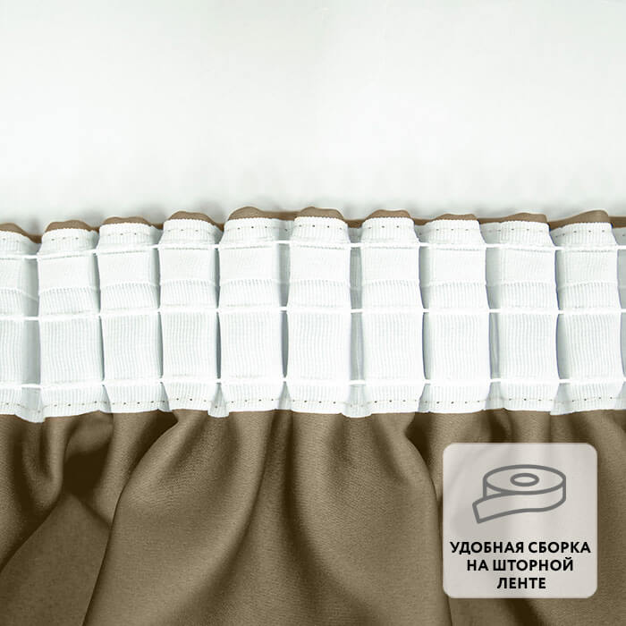 Ровные складки образуются благодаря удобной шторной ленте, пришитой по верхнему краю.