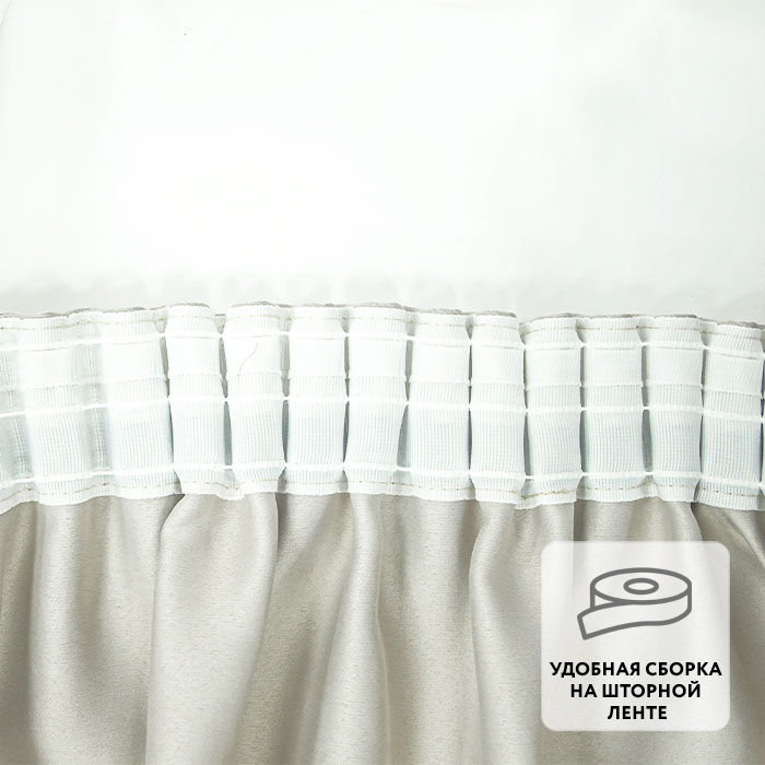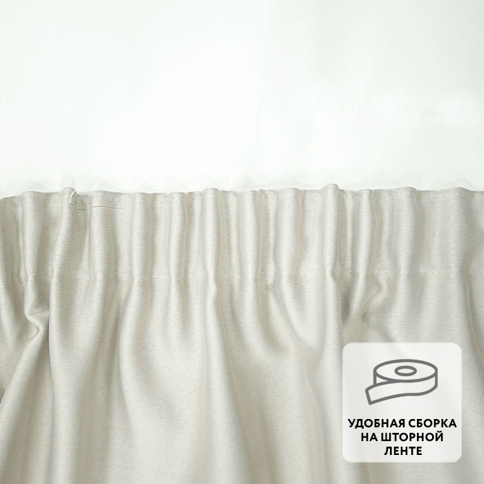 Ровные складки образуются благодаря удобной шторной ленте, пришитой по верхнему краю.