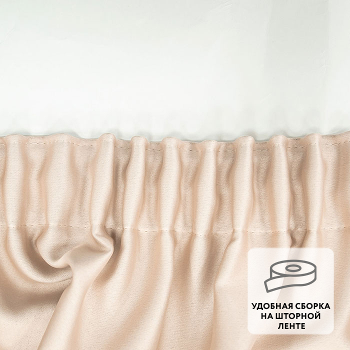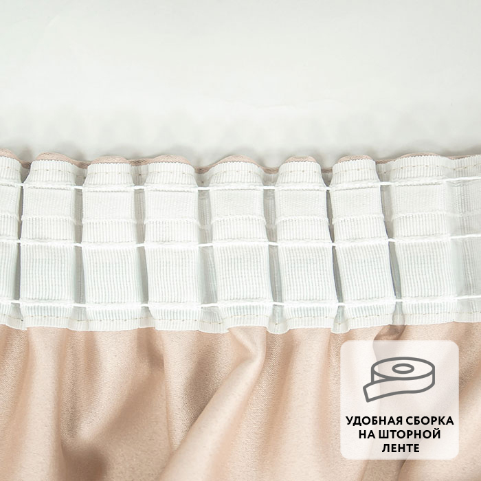Ровные складки образуются благодаря удобной шторной ленте, пришитой по верхнему краю.