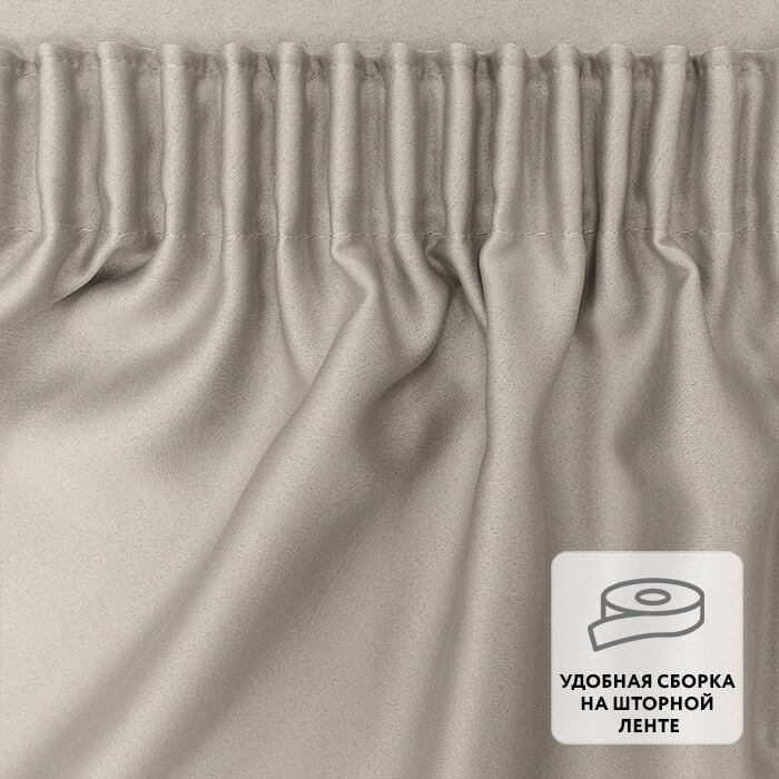Ровные складки образуются благодаря удобной шторной ленте, пришитой по верхнему краю.