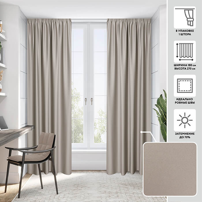 Плотные шторы из ткани блэкаут с деликатным жемчужным блеском на 70 % защищают от проникновения в комнату прямых солнечных лучей.Стильные оттенки штор великолепно подойдут для любых интерьеров. Шторы устойчивы к выцветанию и загрязнениям, не деформируются после стирки. Приятная на ощупь гладкая поверхность отлично драпируется, а отсутствие ворсинок на поверхности ткани делает шторы гипоалергенными.